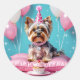 Cute Pink Yorkie Birthday Classic Round Sticker