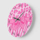 Cute Pink Zebra Leopard Animal Print and Girly Bow Large Clock