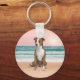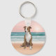 Cute Pitbull Dog Sitting on Beach with sunset Key Ring