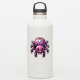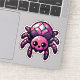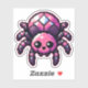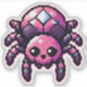 This image showcases a pixel art depiction of a spider, rendered in a charming, retro 8-bit style. The spider’s body is predominantly pink, accented with darker shades and light blue highlights, creating a striking contrast against its black outline. This pixelated arachnid exudes a playful yet edgy vibe, reminiscent of classic video game aesthetics. The charm-like design suggests symbolism related to luck and protection, while the colours pink and black add layers of mystery and complexity. The pixel art style not only evokes nostalgia but also highlights the intricate artistry involved in digital creations.