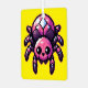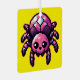 This image showcases a pixel art depiction of a spider, rendered in a charming, retro 8-bit style. The spider’s body is predominantly pink, accented with darker shades and light blue highlights, creating a striking contrast against its black outline. This pixelated arachnid exudes a playful yet edgy vibe, reminiscent of classic video game aesthetics. The charm-like design suggests symbolism related to luck and protection, while the colours pink and black add layers of mystery and complexity. The pixel art style not only evokes nostalgia but also highlights the intricate artistry involved in digital creations.