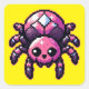 This image showcases a pixel art depiction of a spider, rendered in a charming, retro 8-bit style. The spider’s body is predominantly pink, accented with darker shades and light blue highlights, creating a striking contrast against its black outline. This pixelated arachnid exudes a playful yet edgy vibe, reminiscent of classic video game aesthetics. The charm-like design suggests symbolism related to luck and protection, while the colours pink and black add layers of mystery and complexity. The pixel art style not only evokes nostalgia but also highlights the intricate artistry involved in digital creations.