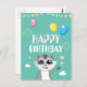Cute playful and funny racoon with bunting and balloons on birthday cards and luggage tag. Great for children and anyone who wants to add a sweet playful tone to their greeting cards.