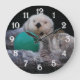 For otter fans! Decorate a wall space with this nature themed wall clock with white numerals that features the photo image of a pair of cute Sea Otters playing with their ball toy. Select your clock style and size along with hand colour.