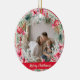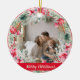 Turn a treasured memory into a holiday keepsake with this round photo ornament. Your picture is framed by a festive poinsettia, red bell & ornament, gold snowflake, and holly wreath, while the back features an original holiday message that you can use as is or customise to your liking. A perfect way to personalise your tree or gift a meaningful memento to friends and family.