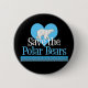 A beautiful white polar bear in the centre of a pretty blue heart above the text SAVE THE POLAR BEARS in white and blue. This cute polar bear button is a cute stocking stuffer for a girl who likes animals.