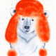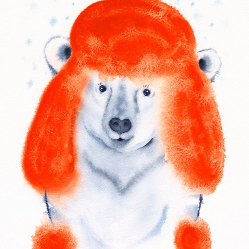 Cute Polar Bear Cub in red winter hat watercolor by artist Zaira Dzhaubaeva.