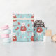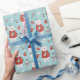 Cute polar bear wrapping paper personalised with a name or any custom text. Great to wrap baby or kids presents for Christmas or the Holidays, featuring cute animals and winter illustrations in a soft red colour and blue background with green hues.