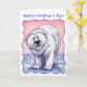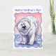 Cute Polar Bear Art Mother's Day Card created by Imagine That! Design features our original whimsical art by Traci Van Wagoner of a fun white polar bear standing in a snowy landscape with a sunrise pink sky and a playful wavy purple border. Inside is a customisable message that reads, Here's a BEAR HUG for your special day! with the polar bear in the bottom right corner. On the back of the card is the humourous polar bear's butt. This cute white bear card is a great way for all sea bear lovers, polar bear lovers, and wild animal lovers to wish their mum a happy Mother's Day. Bring a smile to her face and don't forget to give her a bear hug to show her how much you love her.