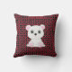 Modern cute polar bear cartoon on black and red diamond pattern Throw Pillow. Red diamonds have pyramid shapes seen from above.