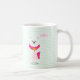 NewParkLane - Personalised Mug, with a cute polar bear with a hot pink scarf and an ice-cream, and a text balloon for your name or other personal text, against a fun mint green striped background.