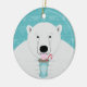 Cute Polar Bear Sips Hot Chocolate on Teal Ceramic Tree Decoration