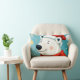 Cute Polar Bear Wearing Santa Hat and Scarf Lumbar Cushion