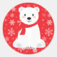 Cute Polar Bear Winter Snowflake Red Classic Round Sticker