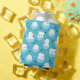 Can cooler with a cute Christmas pattern featuring polar bears standing on floating ice wearing red santa hats. Little igloos, snowflakes and fish surround these adorable polar bears chilling on the water. Light blue background. Cute and whimsical holiday design.