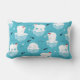 A lumbar pillow with a cute Christmas pattern featuring polar bears standing on floating ice wearing red santa hats. Little igloos, snowflakes and fish surround these adorable polar bears chilling on the water. Light blue background. Cute and whimsical holiday design.