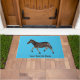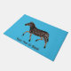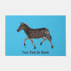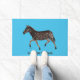 A brown and white, "polka dot zebra" on a medium blue background. Add your own text.