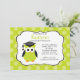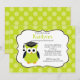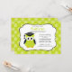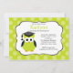 So very cute class of 2013 Kindergarten Graduation or elementary school graduation invitation featuring an adorable polka dot lime green owl wearing a graduation robe and graduation cap set on a dark lime green & light green polka dotted background with a matching back. Personalise with your party information and you're all set to go! Matching thank you notes, stickers & postage available in our shop at www.celebrateitinvites.com ©JW Illustrations
