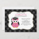 So very cute class of 2013 Kindergarten Graduation or elementary school graduation invitation featuring an adorable polka dot pink owl wearing a graduation robe and graduation cap set on a black & grey polka dotted background with a matching back. Personalise with your party information and you're all set to go! Matching thank you notes, stickers & postage available in our shop at www.celebrateitinvites.com ©JW Illustrations