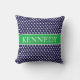 Simple, elegant, modern, cute and trendy Polka Dots pattern or design with custom Monogram, Name or Initals in a preppy font for square Throw and Lumbar size Pillows or Cushions. Navy Blue and white colour polka dot background and accent apple or Kelly Green colour stripe. Click the 'Customise' button to personalise your pillow and add your own name or initials. Choose your pillow size and own font and colours to make it your own. This stylish and chic, girly design will enhance any home decor, living room, sofa, lounge, bedroom, office, beach house, flats, apartments, boat or university or college dorm room, nursery, great for teenagers, couples, families, new baby, girls, boys or kids. This pillow and cushion is a perfect gift for yourself or someone you love.