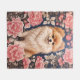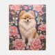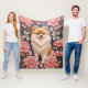 Cute Pomeranian Dog Pink Floral Fleece Blanket