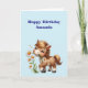 Birthday card with an adorable illustration. A little brown pony happily eating daisies.