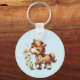 A keychain with an adorable illustration. A little brown pony happily eating daisies.