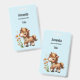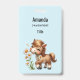 Name tag with an adorable illustration. A little brown pony happily eating daisies.