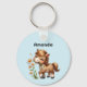 A keychain with an adorable illustration. A little brown pony happily eating daisies.