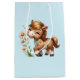 Gift bag with an adorable illustration. A little brown pony happily eating daisies.