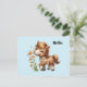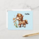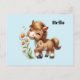 A postcard with an adorable illustration. A little brown pony happily eating daisies.