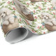 An adorable little white Poodle puppy laying in a wicker basket is the feature in the pattern on this Holiday gift wrapping paper. The portrait is amid a pattern of green holly leaves and red berries. Perfect for any Poodle Dog lover during the Christmas season.