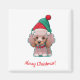 Frontview of a white brownish cute little poodle wearing a red and green Christmas hat, together with the words "Merry Christmas!". The design was created using AI. You can easily personalise this cute magnet by replacing the words with words of your own choice.