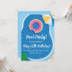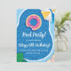 Celebrate your child's pool birthday party with this hand-drawn illustration of a pool, doughnut float, umbrella, leaves, flip-flops, and a towel! This design is perfect for all ages who want to have a fun swim party.
