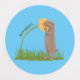 A cute prairie dog is happy smelling the flowers. Drawn in fun cartoon style.