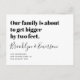 Let friends and know your wonderful news with this cute "Our family is about to get bigger by two feet" pregnancy announcement card.
