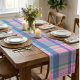Cute Preppy Retro Plaid Pattern in Pink and Blue Table Runner