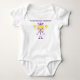 Cute baby girl's bodysuit, with cartoon graphics of a blonde little girl dressed up as an astronaut with a purple princess crown. Purple text, across the top reads Future Princess Astronaut, and can be personalise to read what you want. Chose size and colour you like best. Great baby shower gift idea.