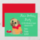 A modern cute design suitable for a girl or tween girl birthday house party of a cute pug in mint and red theme. This design is whimsical, cute and can be fully customised to include your own personal details.