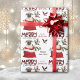 The repeated pattern on this cute Christmas wrapping paper is an image of an adorable Pug dog peeking out from a Holiday gift bag. Behind him is a sprig of holly and red berries. A red and black bullfinch bird is about to land. Stylised red and black buffalo plaid text says MERRY CHRISTMAS", and "Happy New Year" is in dark green. Your own signature is in two fields for you to customise. Be sure to see the matching gift tags.