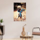 Cute Pug Dog Portrait with Blue Scarf Poster