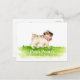 Dog walking and sitting services business promotional postcard with services and a price list in grass green and white. Ideal for dog walkers, dog sitters, those in dog care, and dog grooming. Other matching items are available. Original watercolor art and design by Sarah Trett for www.mylittleeden.com
