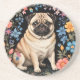 Cute Pug Elegant Colorful Floral Coaster