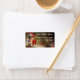 Cute bulldog, pug in red hat sitting in front of a red gift box, staring at the snowfall in the light, unique, custom winter theme return address label with a tranquil, serene, festive feeling.