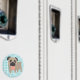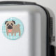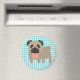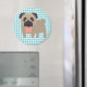 A very nice blue and white gingham pattern magnet with an adorable pug with a peach bow tie!