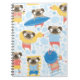 Cute pugs on vacation. pattern with cartoon pug on notebook