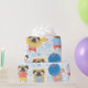 Cute pugs on vacation. pattern with cartoon pug on the beach. Adorable dogs in summer clothes. Kids pattern with pugs eating ice cream,skating,surfing,laying on the beach,sunbathing.