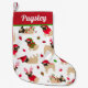 Christmas Pugs Stocking, Cute Pug Dogs in Festive Holiday Outfits with a White Background with Custom Name.