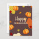 This fun and festive Thanksgiving postcard features bright orange pumpkins and colourful autumn leaves against a rich brown background. The cheerful design is perfect for spreading Thanksgiving joy and warmth to your loved ones. With its vibrant colours and playful style, this postcard is an ideal way to celebrate the season.