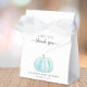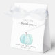 Cute baby boy shower party favour box featuring "thank you" in simple grey typography and a stylish script with swashes and a watercolor of a blue pumpkin.
